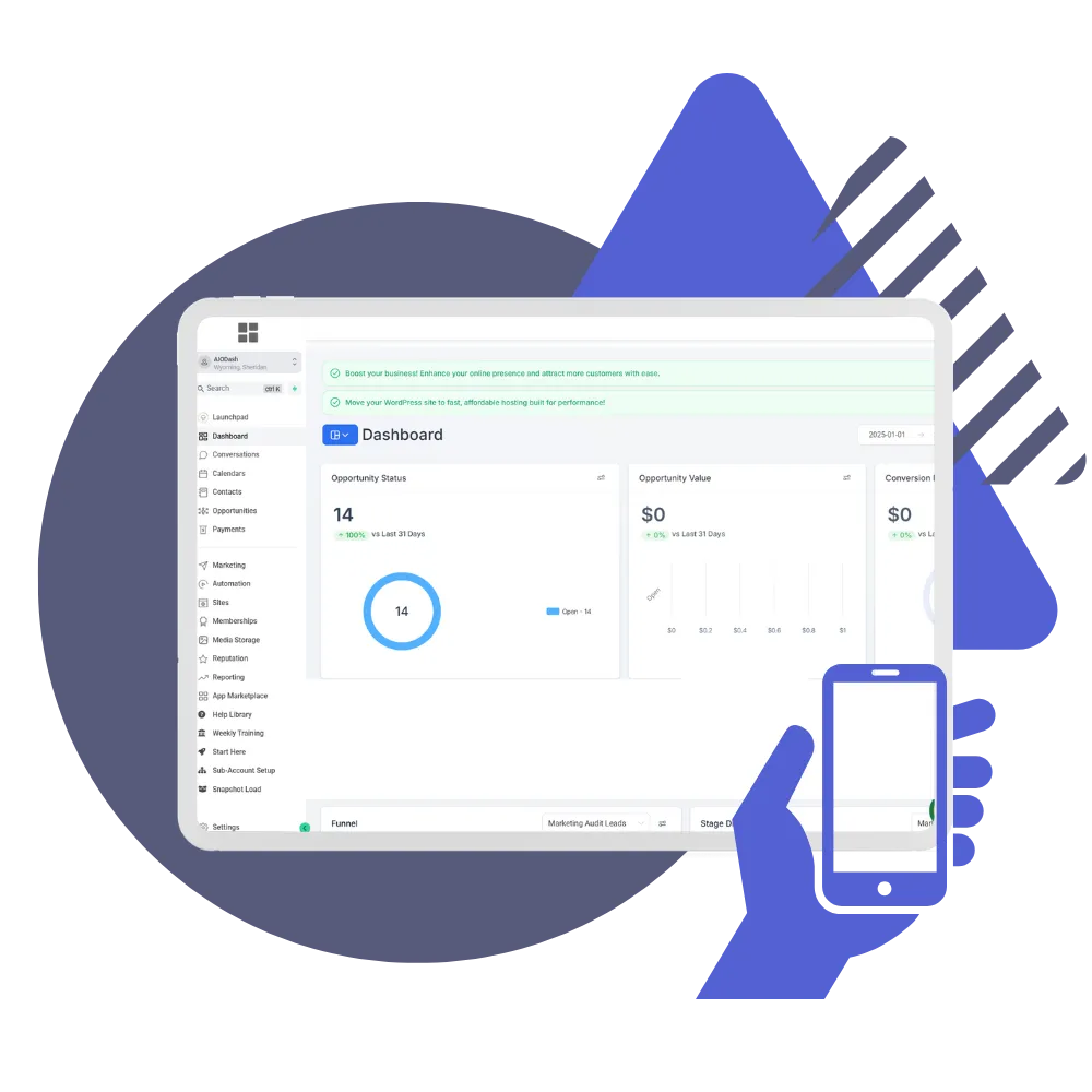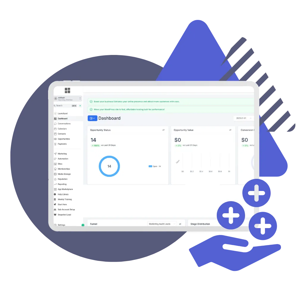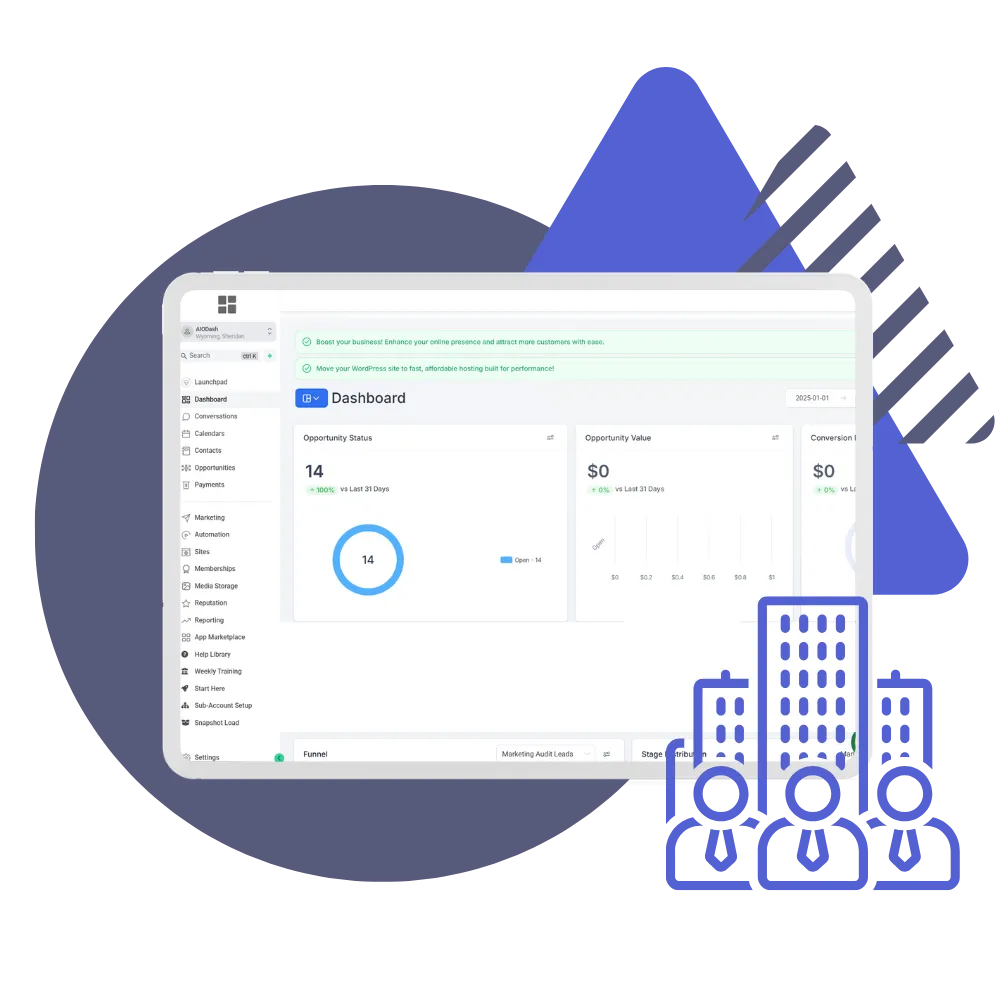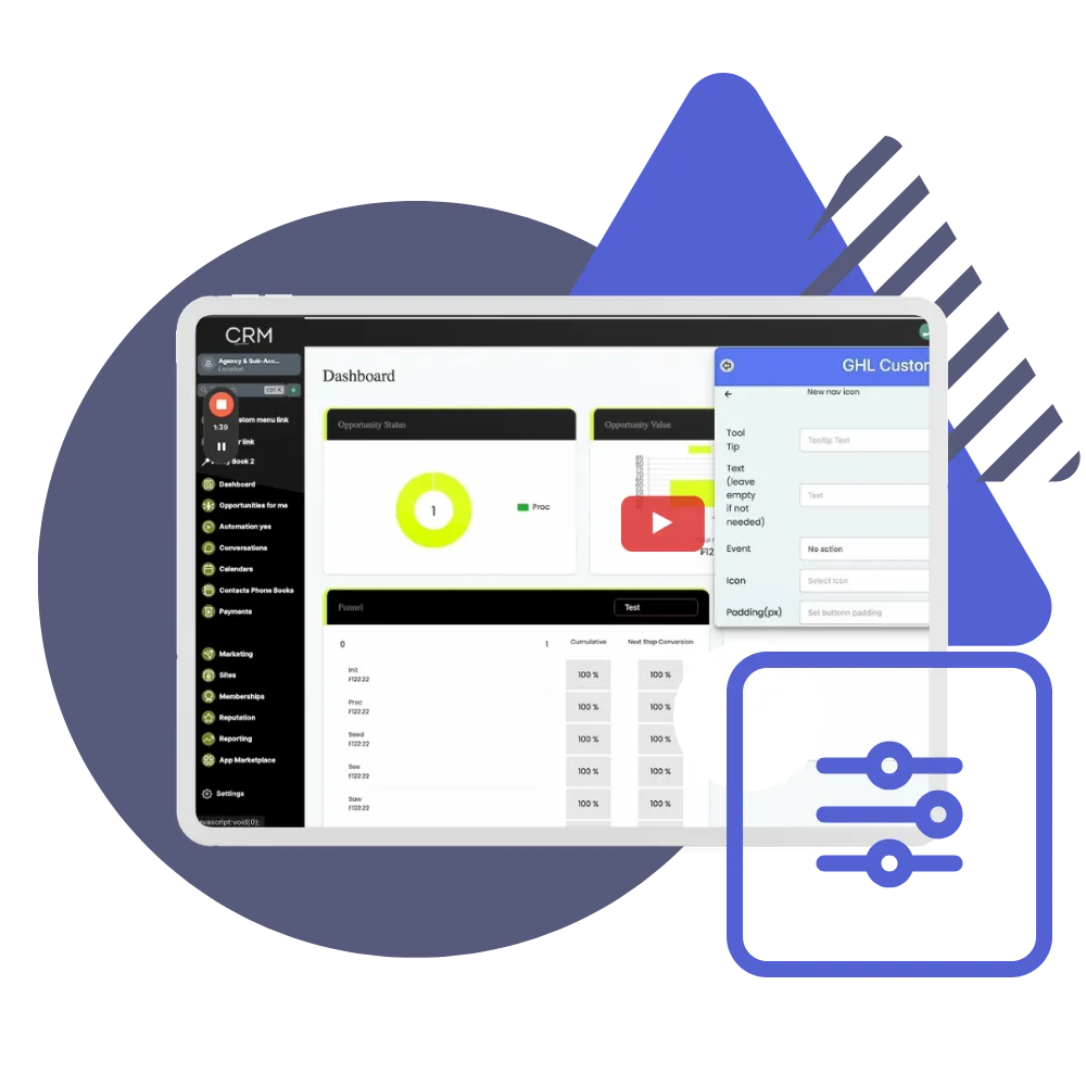 Customize your clients' dashboard to match your agency brand seamlessly. We utilize GHLPlugins.com to deliver this feature, ensuring a fully branded experience for your agency.